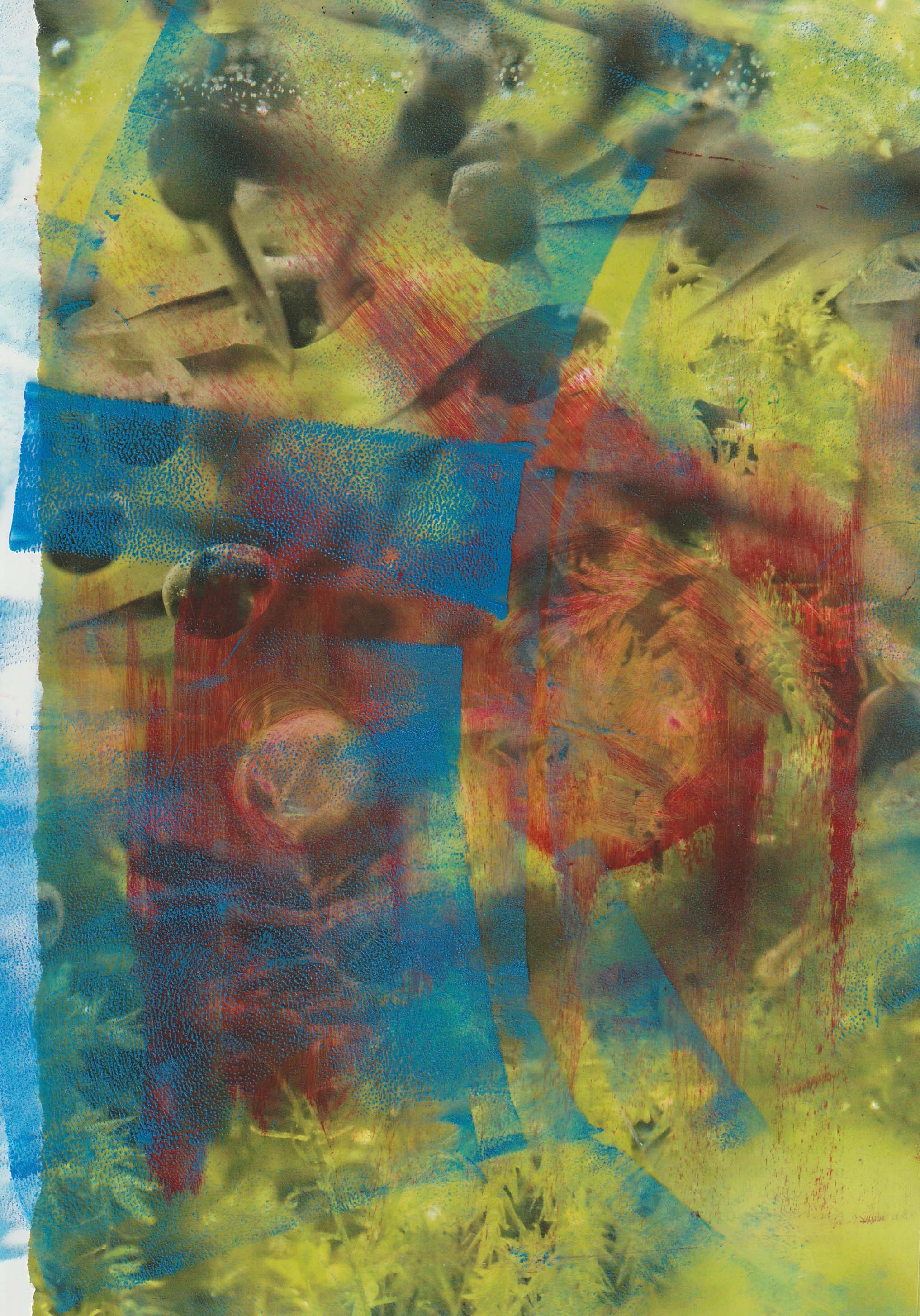 Oil based ink, pen, and pastel on paper